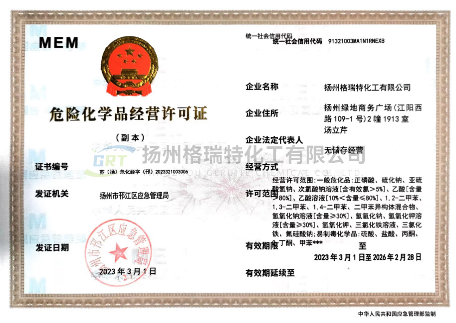 揚州格瑞特化工有限公司生產(chǎn)工廠坐落于江蘇省海安縣胡集工業(yè)園區(qū)和海安精細化工工業(yè)園。總公司成立于1999年,是集科、工、貿為一體的現(xiàn)代化生產(chǎn)型企業(yè)。專業(yè)致力于水處理劑、紡織印染助劑、化纖油劑等產(chǎn)品的科研、開發(fā)、生產(chǎn)和銷售。總公司占地面積40000m,建有現(xiàn)代化標準廠房,擁有先進的生產(chǎn)設備。年產(chǎn)各類水處理劑系列產(chǎn)品12000噸,紡織印染助劑5000噸,產(chǎn)品12個系列40多個品種。總公司注重技術投入,設立產(chǎn)品研發(fā)中心和環(huán)保運營中心,聘請了多位專家為公司技術顧問,并和多個重點院校建立了長期技術合作開發(fā)關系,是南通大學、江南大學、南京工業(yè)大學產(chǎn)學研基地。